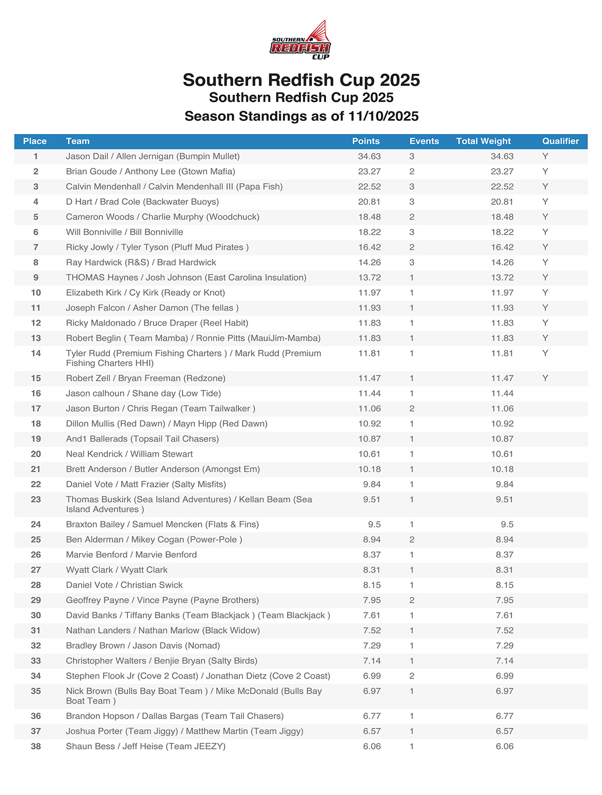 Season Standings going into December 2025